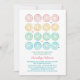 O convite de aniversário bonito com as rosquinhas deliciosas cobertas no glacé pastel e polvilha. Cor-de-rosa, amarelo, verde, e azul! A parte traseira caracteriza as listras brancas e cor-de-rosa.
