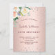 Um glamouroso 50º (ou qualquer idade) convite de aniversário. Um fundo de aparência metálica falsa rosa dourado. Decorados com diamantes falsos cor-de-rosa e flores impermeáveis, floras em ouro branco e rosa com um pouco de verde. Personalize e adicione um nome e detalhes da parte. Texto rosa dourado escuro. Fundo: fundo rosa dourado e diamantes.