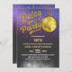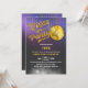 © Socialite Designs Inc. & LICENSORS. Celebre uma festa de aniversário disco convidando os convidados com este convite divertido e retrô para a festa de aniversário disco. As cores são dourado, branco, rosa, roxo e cinza. O design incorpora uma bola disco dourada e luzes de corda roxas/rosas como fundo.