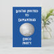 Concurso De Diversão De Aniversário Do Partido Disco — Qualquer Idade. Para Ela Ou Para Ele. Pode Ser Personalizado. Azul e Prata com texto de safra. Tema De Bola De Disco Engraçado. Ideal para aniversários, formandos e formandos.