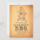 O convite de aniversário de diversão e CHURRASCO rústico tem um porco relaxado engraçado. Convite de churrasco único e original para a festa de churrasco do quintal.