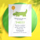 Ilustração adorável de um jacaré divertido segurando um balão laranja. Perfeito para festas de aniversário de criança de garotos ou meninas.