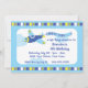 Esse convite personalizável para festa de aniversário de avião de alta voadora apresenta um avião puxando uma faixa pelo céu.