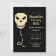 Quer seja uma celebração de época assustadora para um aniversário estilo gótico, faça dele uma festa para se lembrar desses convites personalizados. Eles apresentam uma ilustração de um balão de aniversário em forma de crânio em uma cor de marfim contra um fundo preto e estão prontos para serem personalizados com todos os detalhes do seu partido.