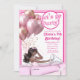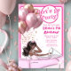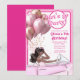 Convite de festa de aniversário da boneca de moda rosa com boneca melanina fofa no carro. Este convite de festa de aniversário da boneca rosa funciona para qualquer idade, basta adicionar os detalhes do seu evento.