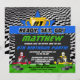 Celebre o aniversário do seu pequeno piloto com este incrível convite para o aniversário do kart! Este convite apresenta um design colorido com karts de caça, bandeiras de verificação, pneus e troféu vencedor. Você pode personalizar o convite com o nome e a idade do seu filho e todos os detalhes da festa. Este convite é perfeito para adicionar diversão e entusiasmo à sua festa temática do kart! Projetado por invitecentral.com