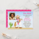 Equitação da menina do afro-americano em um convite do aniversário do partido do cavalo. Este convite temático ocidental caracteriza uma menina bonito do afro-americano que monta um cavalo que veste um chapéu de vaqueiro e umas botas de vaqueiro cor-de-rosa. Alguns elementos JDDigiDesign