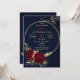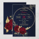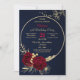 elegantes flores românticas burgundy e folhas de ouro numa coroa dourada convite de aniversário azul de luxo marinho Os detalhes da brilha são simulados