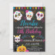 Convite de aniversário de crânio personalizado O dia do Convite de aniversário do crânio de açúcar morto todos os textos são personalizáveis