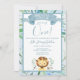 Um filhote de leão, de cor aquosa, com folhagem verde e design de fundo azul de cor aquosa. Perfeito para uma festa temática azul ou africano safari. Por favor, verifique na minha loja os itens correspondentes para a sua festa de aniversário!