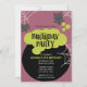 Celebrar o aniversário do seu filho no Dia das Bruxas com este belo e não assustador convite à bruxa de desenho animado! Apresentando um caldeirão verde borbulhante, texto retrô de "Festa de aniversário", um morcego amigável e teias de aranha lúdicas, este design divertido é perfeito para festas de outubro. Totalmente personalizável para seu evento mágico!