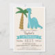 dino azul e palmeira, dinossauro pré-histórico neutro, convite de aniversário de menino ou menina. Personalize este bonitinho, retrô, sinta convite com o nome do seu filho. Bela, simples, design simples. Perfeito para o primeiro bebê, 1rua, aniversário, criança, crianças pequenas, ou crianças mais velhas. As cores incluem verde, azul-aqua e castanho.