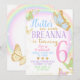 A Elegante Manteiga Dourada da Borboleta do Aniversário Convites Em cores pastel surpreendentes do arco-íris com sotaques dourados, isso certamente fará suas meninas voarem de coração!