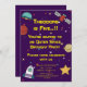 Divirta-se com este convite de aniversário no espaço sideral! Apresentando foguetes, planetas e OVNIs, ele define o palco para uma celebração fora do mundo que seu pequeno explorador de estrelas jamais esquecerá.