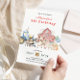 Este Convite é um design encantador e alegre perfeito para um dia grande! Ele apresenta uma cena viva de caserna de aquarela com animais de fazenda adoráveis como uma vaca, porco, ovelha e pato, todos celebrando com chapéus de festa e balões. É perfeito para os pais que querem fazer uma celebração divertida e com temas animais que se sinta quente e caprichosa. Itens correspondentes disponíveis.