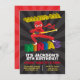 Chamando todos os Ninjas! Convites de aniversário Ninja brilhantes e coloridos com uma espada produzindo fontes 3D ninja vermelhas e um fundo de explosão solar. Excelente para um menino ou menina. Todos os textos podem ser alterados sob a palavra "NINJAS".
