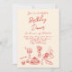 Se você está procurando por um convite único de aniversário elegante e facilmente editado, este é perfeito para você. Como vocês podem ver, ele apresenta um roteiro escrito de mão vermelha com JANTO branco BIRTHDAY sobre fundo creme. Com uma mão vermelha colorida, desenhada TABLEWARE de vinho, uvas, bolo, buquê floral, pão e velas. Com a RSVP nas costas. Com informações inteiras que podem ser personalizadas facilmente clicando no botão personalizar. Este convite de aniversário de tendências Quirky e exclusivo também é um convite eletrônico digital se você quiser enviá-lo por e-mail ou texto. Então pegue e faça seus convites verdadeiramente engajados.