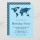 Convites Festa de aniversário do Mapa do Mundo Azul Moderno