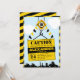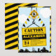 O convite de festa de aniversário do menino com sinal de cuidado de construção se encaixa perfeitamente no tema de construção e edificação que seu filho tanto ama. Um guindaste está baixando um sinal de construção sobre uma cidade com os detalhes da celebração de aniversário do seu filho. Você pode personalizar todas as palavras neste modelo