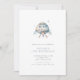 Convite de Aniversário do Festa do Rocket Spaceship Boy de Aquarela Minimalista em azul e cinza. O reverso apresenta um padrão de ilustrações de aquarela do espaço.