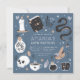 Planeje sua festa de aniversário de sorte, cigana, ou temática de Halloween com esses convites de chic assustadores em uma paleta de cores inspirada na natureza do boho. Design apresenta ilustrações de um cobra, espelho, vela, jarro, crânio, cartas de tarô e poção em torno dos detalhes da sua festa de aniversário.