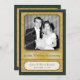 Celebre aquele casal especial com este convite de festas de Ouro Aniversário. A foto deles se senta sobre um fundo com padrão de damasco dourado com uma borda verde escura. (Certifique-se de substituir uma foto grande e de alta resolução por esta imagem frontal). Os seus nomes e a data do casamento (ou qualquer outro texto) são assinalados na placa abaixo. Em seguida, mostre-os como eles estavam na época e agora estão nas costas com todas as informações do evento abaixo. Disponível em cores alternativas com favoritos correspondentes e postagem disponível.