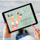 convite de aniversário legal de patinagem em roleta verde para qualquer idade que apresente "Vamos Roll!" num guião retrorreflector e uma ilustração retrorreflectora dos skates de roletes cor de laranja pastel numa rapariga que vista meias de tubos riscados. Adicione seu nome e ano de aniversário em tipografia azul.
