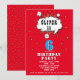 Convite de aniversário do Red Super Herói Chic Speech Boy. Diversão do convite de aniversário de super-heróis para rapazes.