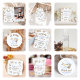 Espessura de 18 pt / Gramatura de 120 lb. Branco suave, textura delicada.