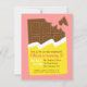 Tenha uma doce celebração com este convite de aniversário de chocolate bar doce! Um tema de festa de doces é excelente para meninas de aniversário. Personalize facilmente com os detalhes da sua festa dentro do invólucro brilhante de bar de chocolate amarelo. A cor de fundo rosa pode ser alterada no modo de personalização.