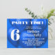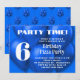 Convites de festas de aniversários de menino com design azul brilhante de balões. Personalize linhas de texto branco moderno, sobre um monte de balões de hélio, e adicione sua idade em um grande número. "Hora do partido" no topo, dos cartões horizontais, com o tipo de parte em letras maiores. O reverso também tem um padrão de balões azuis. Comprar impresso para distribuir ou escolha a opção de download instantâneo para compartilhar online.
