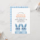 Tema de coelhinho fofo para a festa de aniversário do irmão gêmeo, apresentando dois coelhos bebês azuis usando óculos. VOCÊ PODE REMOVER OS ÓCULOS! Fundo com padrão xadrez.