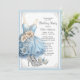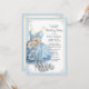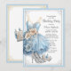 Convite de aniversário da Cinderela com sapatos de salto alto de diamante, vestido e tiara em um lindo fundo azul e prata. Você pode alterar a cor da borda azul e a cor do texto. Este convite da Cinderela em azul bebê e prata é facilmente personalizado para o seu evento, basta adicionar seus detalhes.
