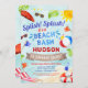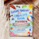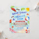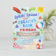 Divirta-se com nosso convite de aniversário de "Beach Bash"! Perfeito para a festa de aniversário de verão de um garoto, este convite vibrante explode com entusiasmo em cores primárias brilhantes. O design mostra brinquedos de praia brincalhões, bola de praia, óculos de sol fofos, e um sol radiante, todos em meio a copos de água. As imagens vivas capturam a essência de um dia ensolarado e cheio de alegria. Personalize o convite com os detalhes do seu partido para torná-lo exclusivamente seu. Impresso em estoque de cartão de alta qualidade, completo com envelopes para fácil envio. Faça um salto com nosso convite "Splish Splash Beach Bash" e defina o tom para uma festa de aniversário inesquecível cheia de diversão e risos. Ordene agora e deixe a comemoração começar!