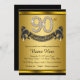 90 convite de aniversário com números de diamante e faixa em um lindo fundo preto e ouro rico. Este belo convite de aniversário 90 preto e dourado é facilmente personalizado para o seu evento. Você pode alterar a cor de fundo. Esta design surpreendente funciona bem para um homem ou uma mulher. Este é um design impresso sem diamantes reais, prata, brilho, etc.