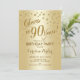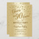 90 Convite de aniversário para mulheres ou homens. Design elegante com folha de ouro falso brilhante. Possui fonte de script e confetti. Saúde para 90 anos! Perfeito para uma celebração de na moda marco de um dia.