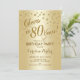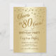 80 Convite de aniversário para homens ou mulheres. Cartão de convite elegante com efeito falsa de ouro brilhante e folha de ouro. Possui fonte de script na moda e confetti. Saúde para 80 anos!