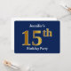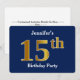 Este design de convite apresenta o número ordinal "15" com uma aparência falsa em forma de ouro. Também apresenta um nome personalizado e um fundo azul. Poderia ser usado para convidar pessoas para a décima quinta festa de aniversário de alguém.