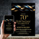 Convide seus amigos e entes queridos para o seu aniversário de 70 com este convite de aniversário moderno. A área de texto personalizável neste modelo de convite permite que você inclua facilmente todos os detalhes necessários para sua celebração especial de aniversário, incluindo as informações de data, hora, local e RSVP. Uma variedade de tipos de papel e estilos de canto estão disponíveis para seus convites exclusivos, juntamente com a opção de download se você preferir um formato digital.