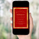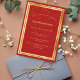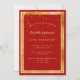 Um cartão de convite de aniversário moderno de 50º (ou qualquer idade) para ele e para ela. Fundo vermelho com uma falso moldura dourada e um sprinkle confetti de ouro, letras coloridas de ouro. Personalize e adicione as informações de sua parte. Fundo: fundo vermelho com sprinkle confetti.