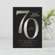 Convide seus amigos e entes queridos com este convite de aniversário 70 de ouro e preto moderno. A área de texto personalizável neste modelo de convite permite que você inclua facilmente todos os detalhes necessários para sua celebração especial de aniversário, incluindo as informações de data, hora, local e RSVP. Uma variedade de tipos de papel e estilos de canto estão disponíveis para seus convites exclusivos, juntamente com a opção de download se você preferir um formato digital.