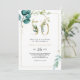 Este ouro e eucalipto 50º convite de aniversário é perfeito para uma elegante celebração de 50º aniversário. O design apresenta cor d'água verde, dourada, folhas azuis e flores pintadas manualmente, bem como flores arrumadas em buquês e quadros geométricos elegantes.
