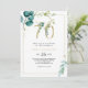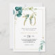 Este convite de aniversário de ouro e eucalipto é perfeito para uma elegante comemoração de 70. O design apresenta cor d'água verde, dourada, folhas azuis e flores pintadas manualmente, bem como flores arrumadas em buquês e quadros geométricos elegantes.