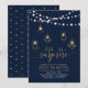 Celebre seu dia especial com este na moda moderno convite de aniversário adulto. Este sofisticado design apresenta tipografia de na moda, belas luzes de cordas e gráficos de fixação de luz geométrica na textura dourada. Você pode personalizar o texto e a cor do plano de fundo. Convidado perfeito para uma celebração de aniversário de ouro e marinho azul moderna para qualquer idade.