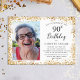 Este Convite de aniversário elegante é perfeito para qualquer um que queira brindar a ter 90 anos e ainda fabuloso! O design apresenta uma borda brilhante de ouro glamourosa e uma elegante tipografia de script manuscrito. Carregue facilmente a sua própria foto e edite todos os detalhes usando o modelo fornecido. Entre em contato com o designer para quaisquer dúvidas relacionadas a este design ou a produtos correspondentes.