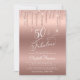 Elegante e chic 50º convite de aniversário com "50 & Fabuloso" escrito em um script branco de na moda, um fundo de rosa dourado e gotas de cintilação falsa de rosa dourado. Você pode personalizar com o nome dela e os detalhes da festa.