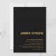 Um sofisticado convite de aniversário negro e dourado minimalista moderno.