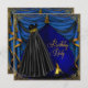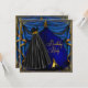 Elegante convite de aniversário real e ouro. Este convite de aniversário azul e dourado de uma bela mulher apresenta um lindo vestido preto e dourado e cortinas azuis e douradas. Você pode personalizar facilmente o convite de aniversário real azul e dourado adicionando seus detalhes de evento, estilo de fonte, tamanho de fonte e cor e texto. Observe que todos os adesivos, cartões e designs de convite que você encontrará no Zazzle são gráficos impressos sem joias reais, arcos, levantados, gravados, ou peças ou peças adicionadas.