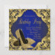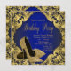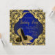 Convites de festas de aniversários reais azuis e dourados de calçado alto de salto. Este elegante convite de aniversário azul real e dourado é facilmente personalizado para o seu partido ou evento, adicionando detalhes do evento, estilo de fonte, tamanho de fonte e cor e texto. Este é um design impresso sem brilho real.