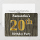 Este design de convite apresenta o número ordinal "20" com uma aparência falsa em forma de ouro. Ele também apresenta um nome personalizado, e uma madeira rústica parece fundo. Os detalhes do evento no verso podem ser personalizados. Poderia ser usado para convidar pessoas para a vigésima festa de aniversário de alguém. [~Z0000016]